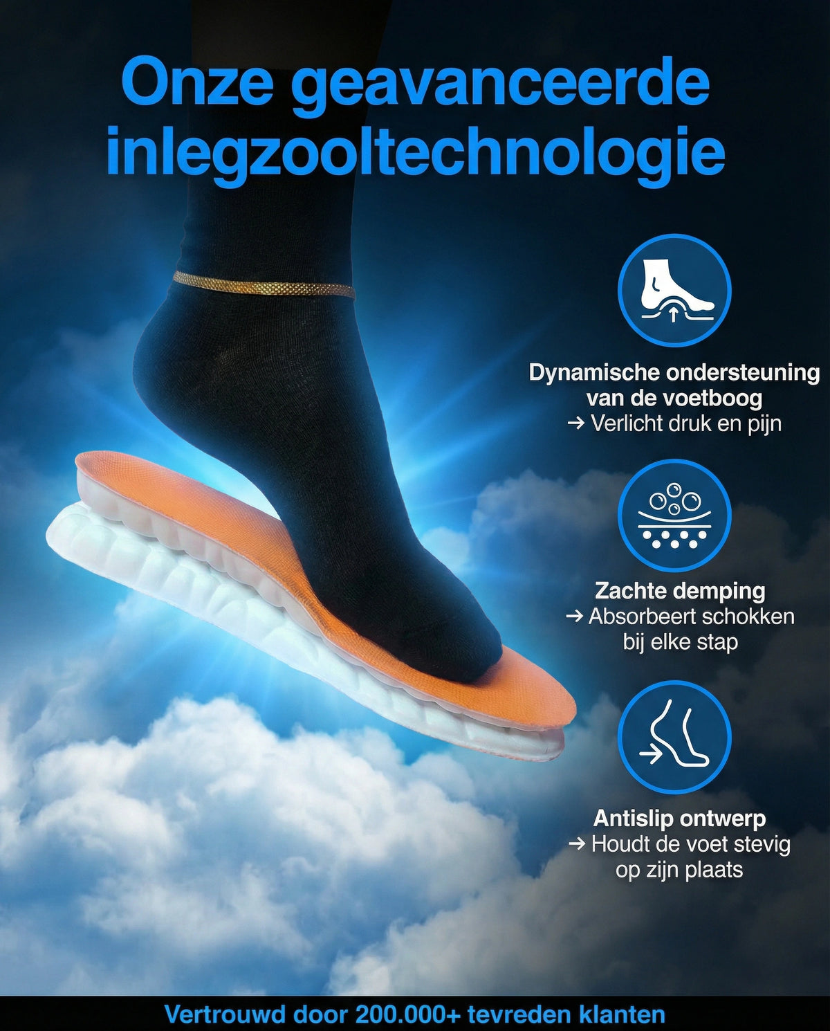 Antwoord 3: In tegenstelling tot standaard zooltjes die vaak snel platgetrapt zijn, zijn deze zolen gebouwd voor duurzaamheid en actieve therapie. Ze bieden niet alleen passieve demping, maar ook functionele correctie en geavanceerde schokabsorptie.